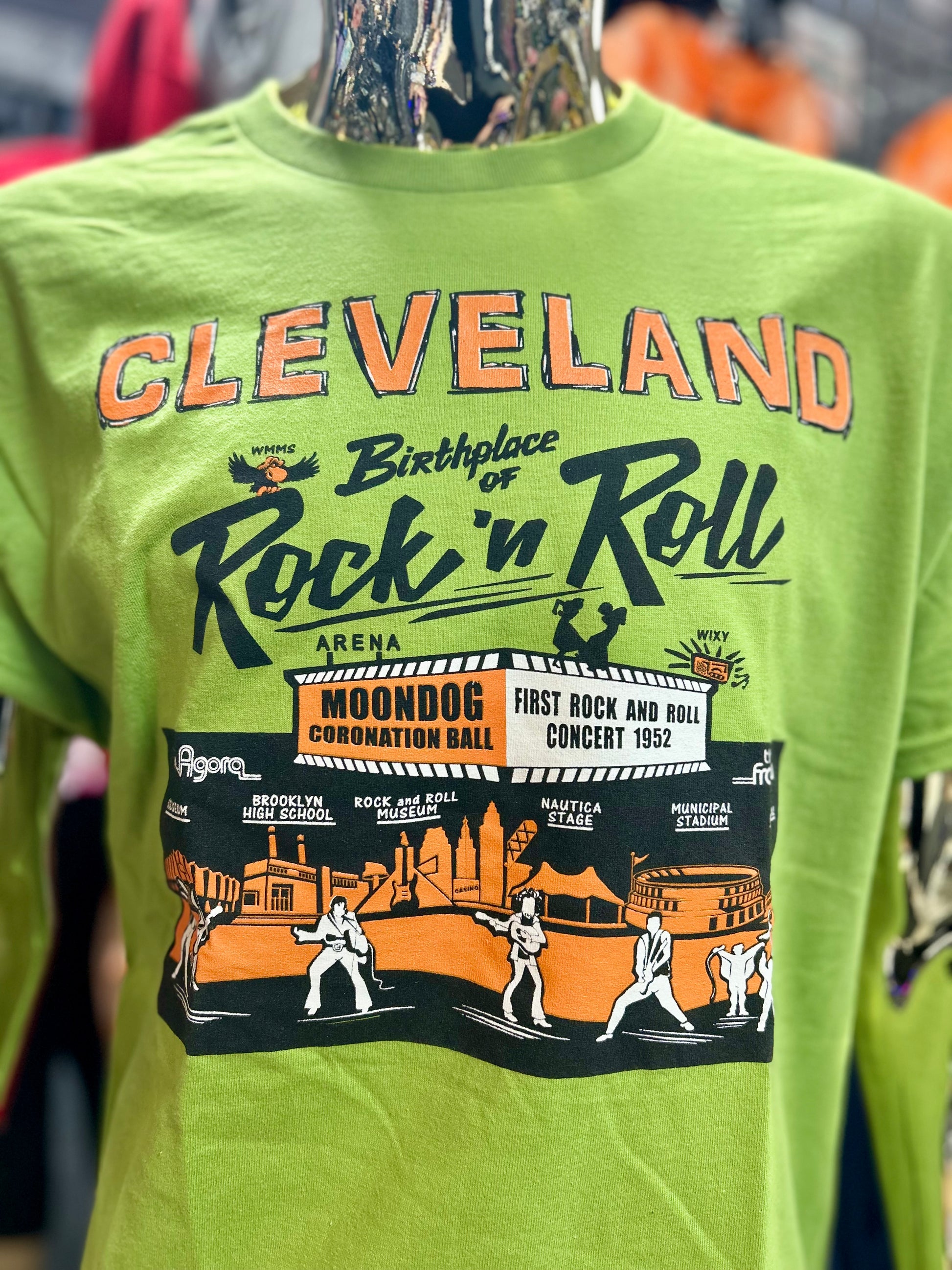 Celebrate Cleveland's pivotal role in the birth of rock and roll with this iconic t-shirt. From the groundbreaking Moondog Coronation Ball to the Rock & Roll Hall of Fame, Cleveland's musical legacy is undeniable. Wear it loud and proud!
