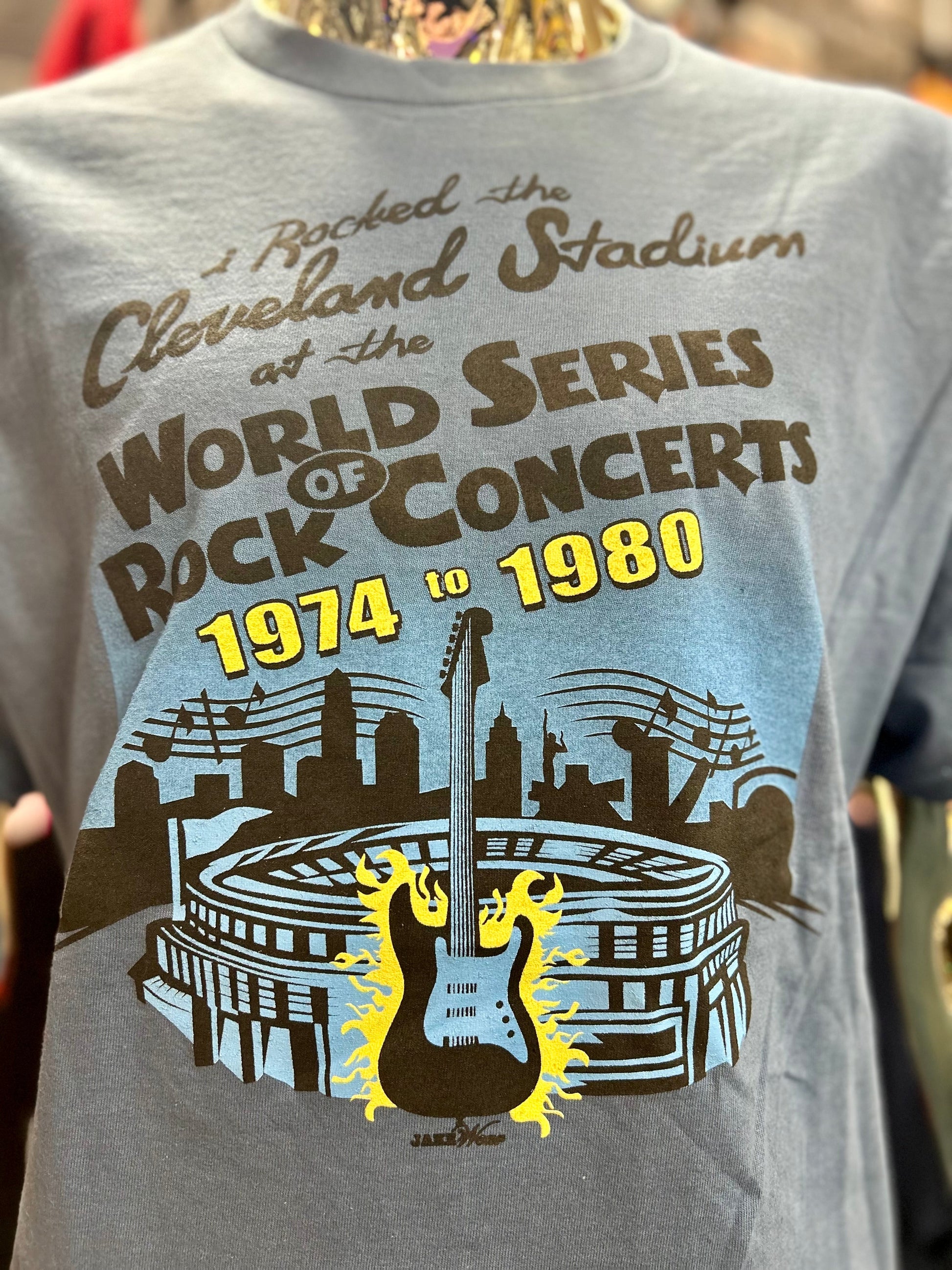 Relive the thunderous roar of a Cleveland summer with this World Series of Rock tee. A tribute to the legendary concerts that shook the shores of Lake Erie, this shirt brings back memories of scorching days, iconic bands, and the electric energy that only a massive rock festival in our own backyard could deliver. Wear a piece of Cleveland music history and let the good times roll again.